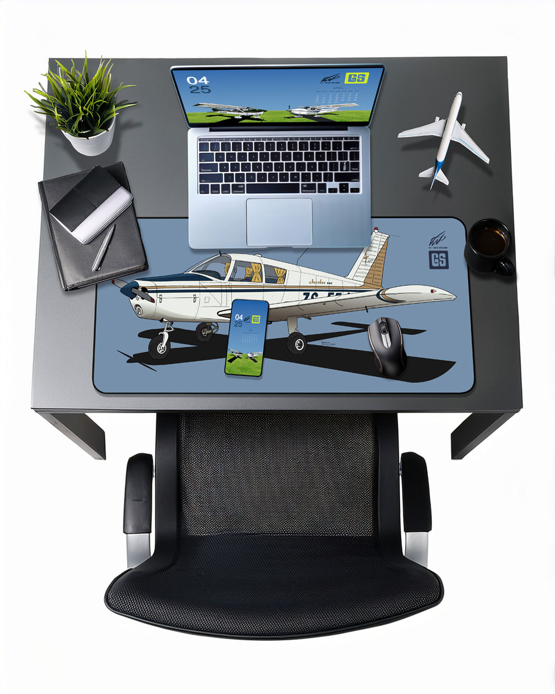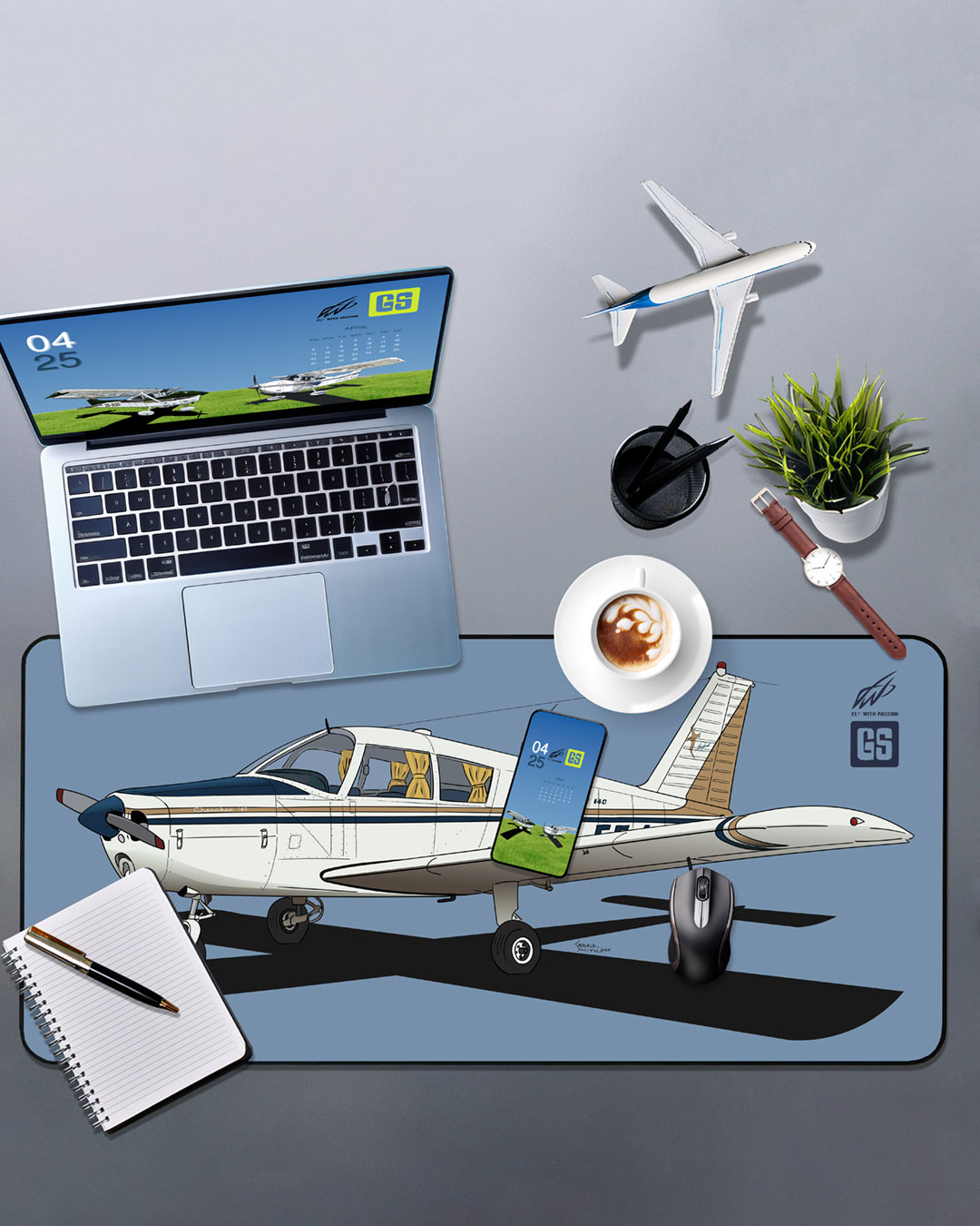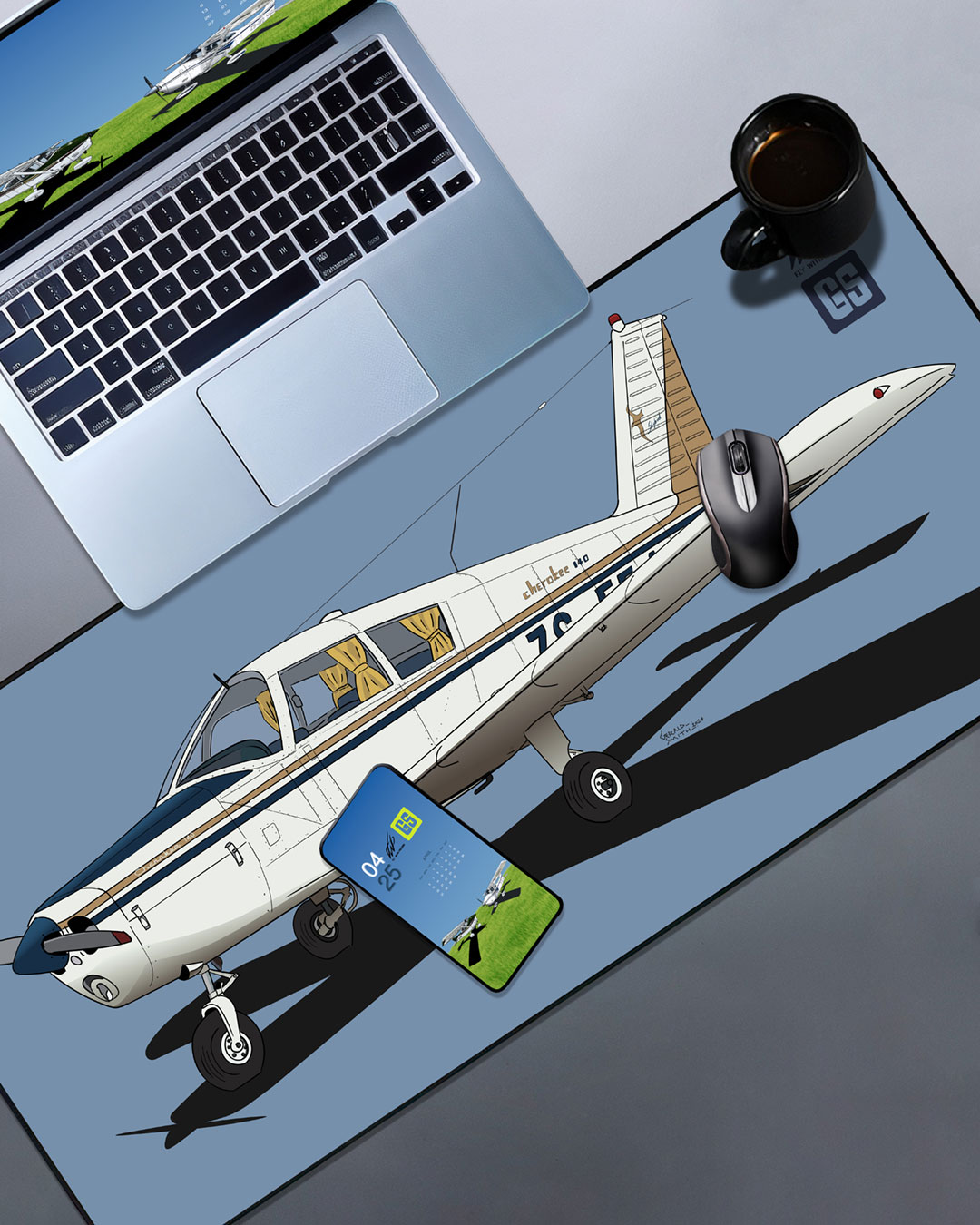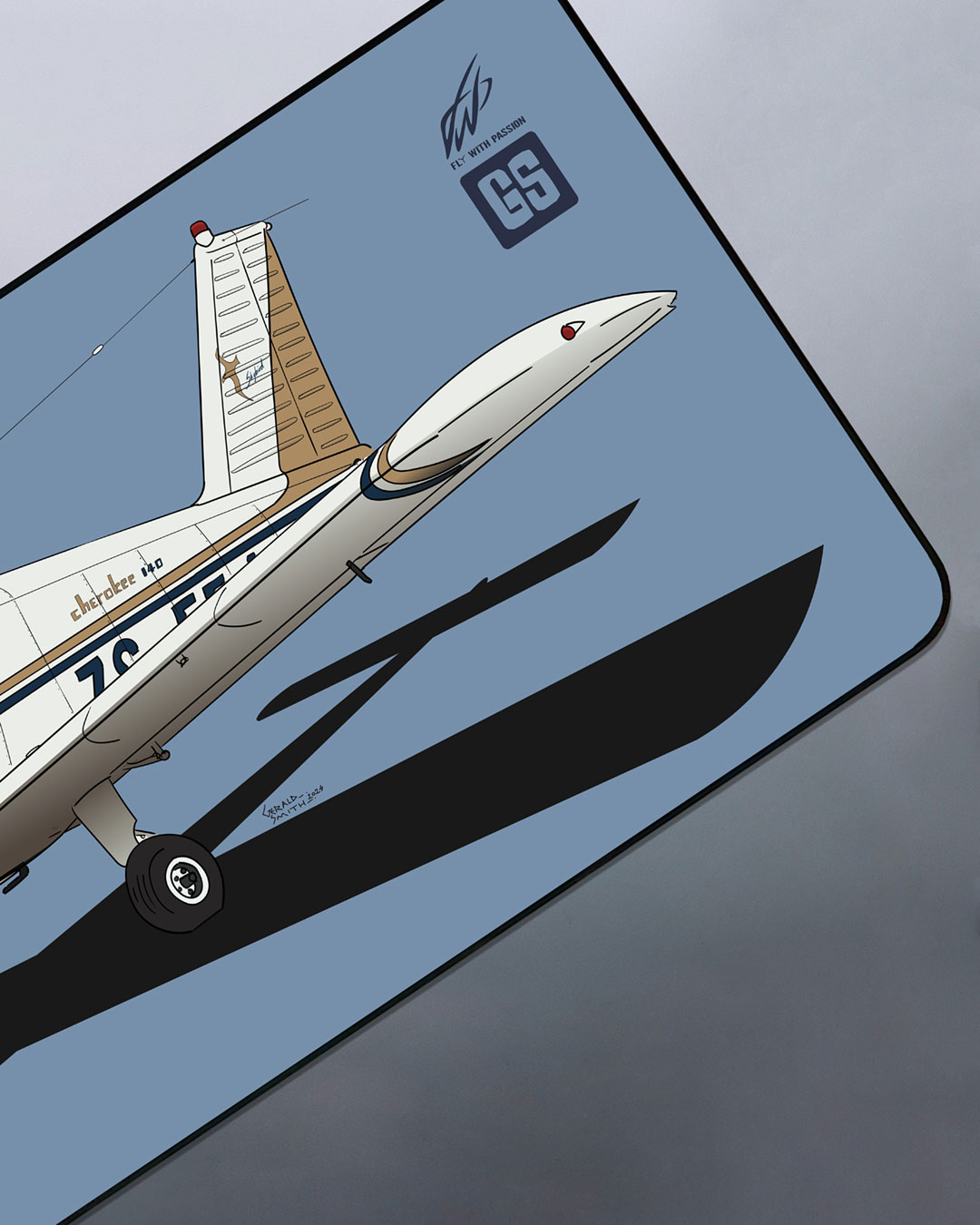 This Desk Mat is a detailed exclusive illustration by artist Gerald Smith, depicting this beautiful Piper Cherokee 140 aircraft.